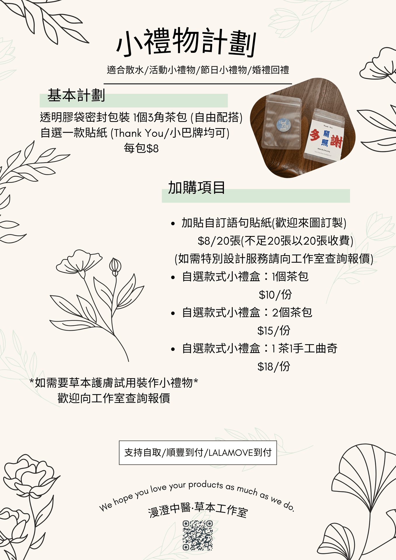 將健康分享出去!令更多人體驗草本天然既力量。工作室為你訂製草本小禮物。